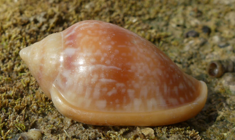 The cowrie’s glossy shell is maintained by its mantle, a specialized tissue that covers the exterior and continually adds layers of calcium carbonate. This process not only strengthens the shell but also preserves its vibrant, porcelain-like finish. Patterns and colours vary widely among species, providing camouflage in their habitats, which range from coral reefs to rocky sea beds. Sizes differ significantly as well, with smaller species measuring around 5 mm and larger ones, such as the Atlantic deer cowrie, reaching up to 19 cm.